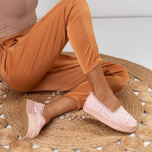• Стильные женские эспадрильи на платформе. Модель выполнена из ткани, украшенной ажурным кружевом. Внутри тканевая стелька. Подошва украшена плетеным джутовым шнуром соответствующего цвета. Идеально подходят для теплых дней!