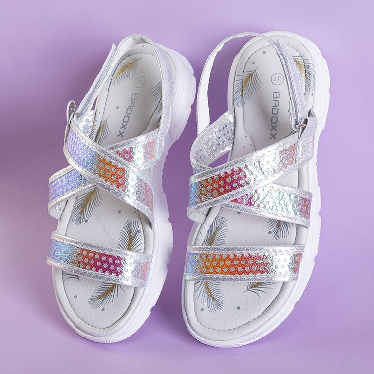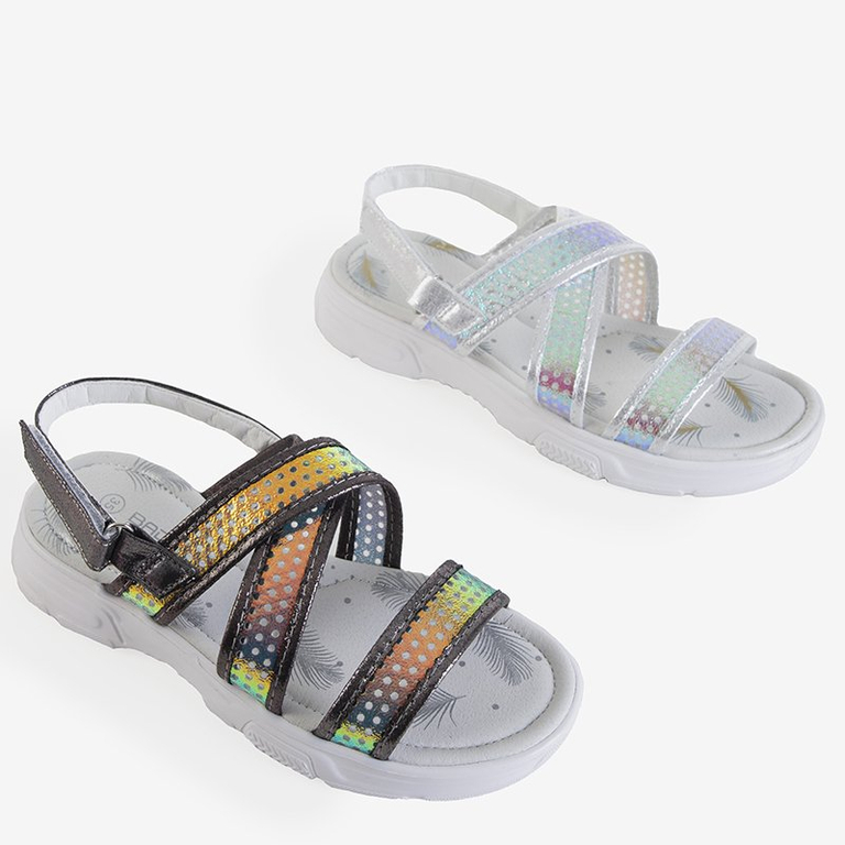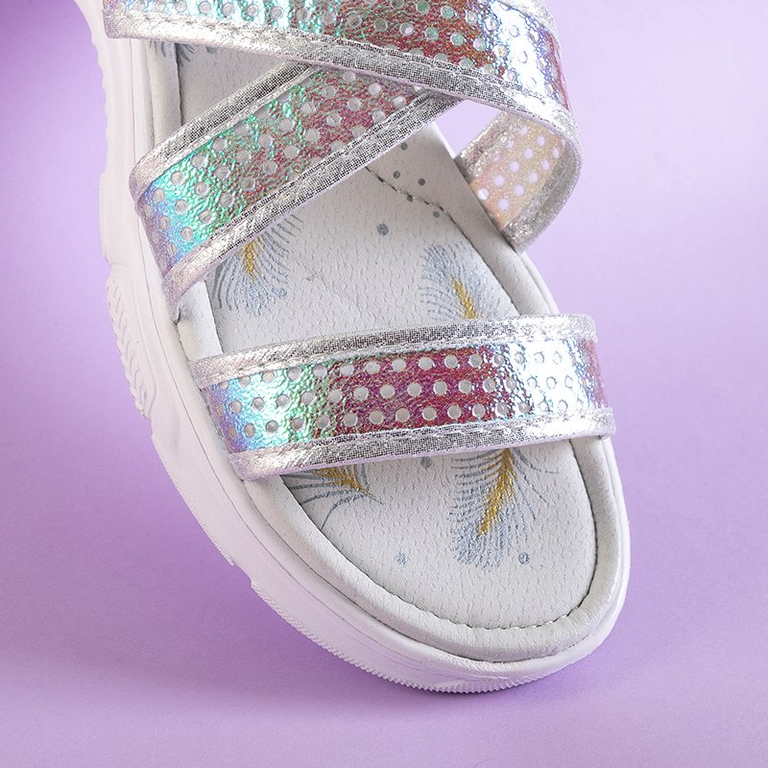 Серебряные детские голографические босоножки Onela