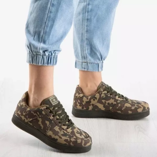 • Модная женская спортивная обувь на плоской подошве. Верх выполнен из экокожи камуфляжного цвета. Внутренняя часть обуви обита тканью. Обувь на шнуровке. Примечание: на изделии отсутствуют некоторые украшения.