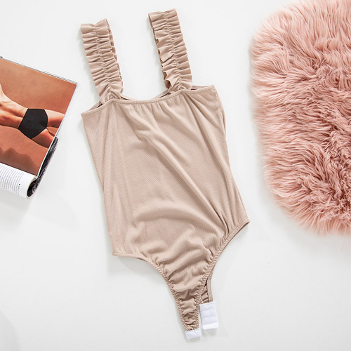 - Трендовая женское боди изготовлено из эластичной ткани в рубчик. Модель на оригинальных бретельках, украшенных оборками. Внизу боди застегивается на крючки. Идеальная база для повседневных образов!