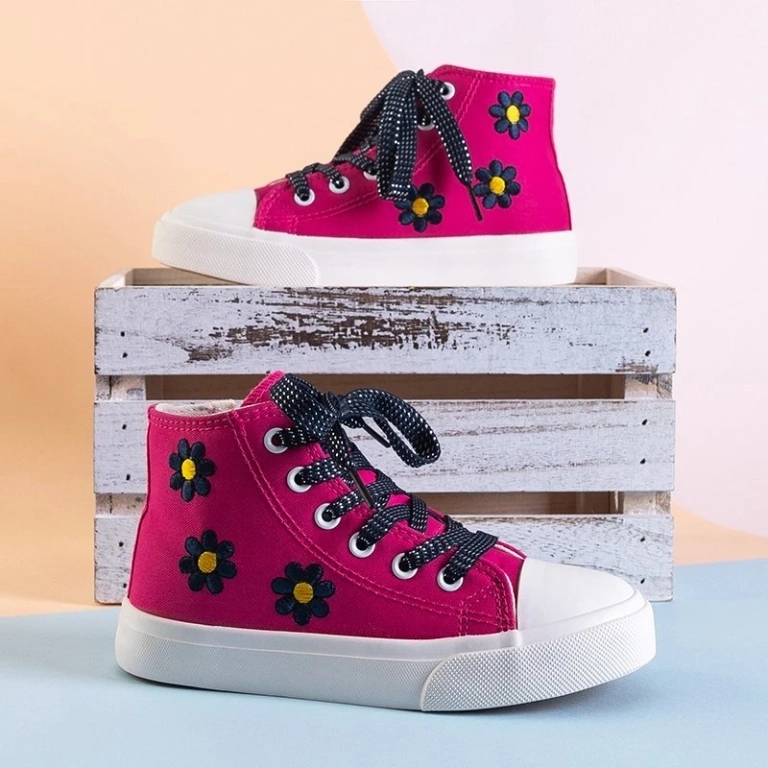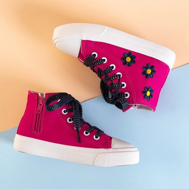 - Стильные детские кеды на плоской подошве. Изготовлены из ткани типа деним. Модель на шнуровке и имеет молнию сбоку. Обувь украшена вышитыми цветами. Идеально подходит на каждый день!
