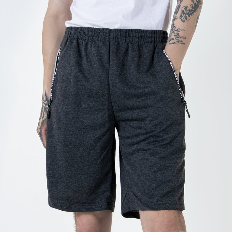 • Удобные мужские спортивные шорты из мягкого хлопкового материала. Модель имеет эластичную резинку в поясе на завязках и два кармана на молниях. Идеально подходит для лета!