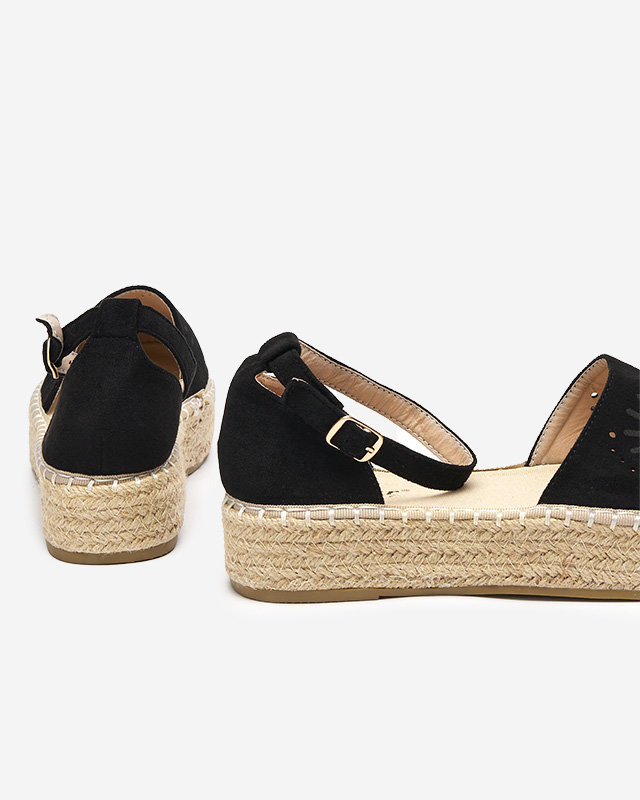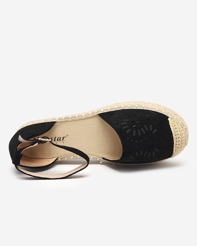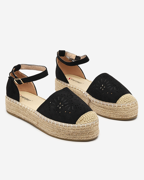 - Модные женские босоножки типа эспадрильи на платформе. Верх выполнен из мягкой экологической замши, украшенный ажурной отделкой. Внутри тканевая стелька. Подошва из плетеной нитью. Ремешок застегивается на пряжку вокруг лодыжки.