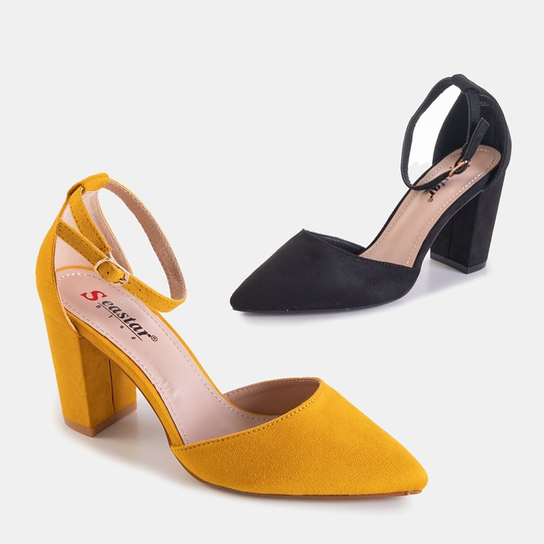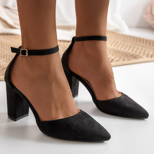 - Женские туфли на устойчивых каблуках - сочетание классики, элегантности и комфорта! Они изготовлены из мягкой эко-замши, а стелька - экокожа. Заостренный носок визуально делает ноги стройнее. Ремешок, застегивается на пряжку вокруг лодыжки.
