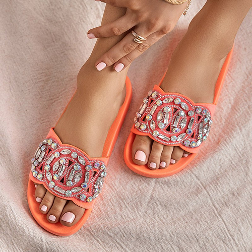 Коралловые резиновые шлепанцы с отделкой Masandra