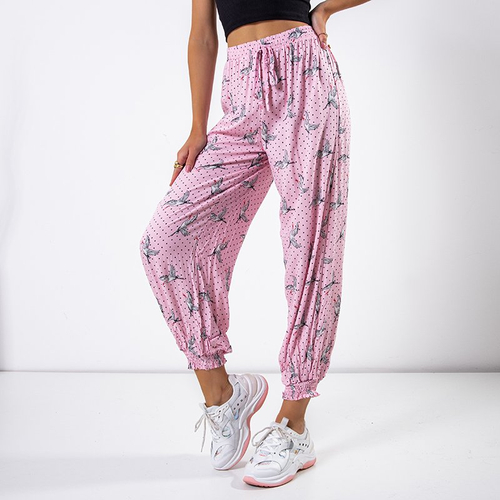 - Легкие женские брюки из вискозы - украшенные принтом в виде птиц и точек. Модель свободного кроя, в поясе и внизу штанин обработана эластичной резинкой. Они обеспечивают комфорт и свободу передвижения.