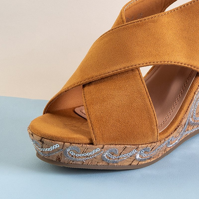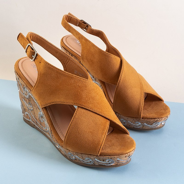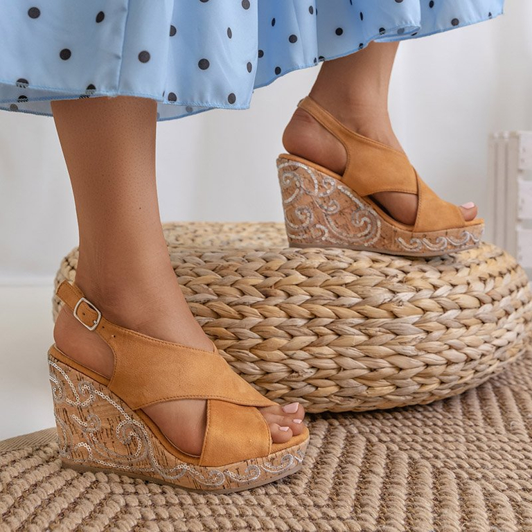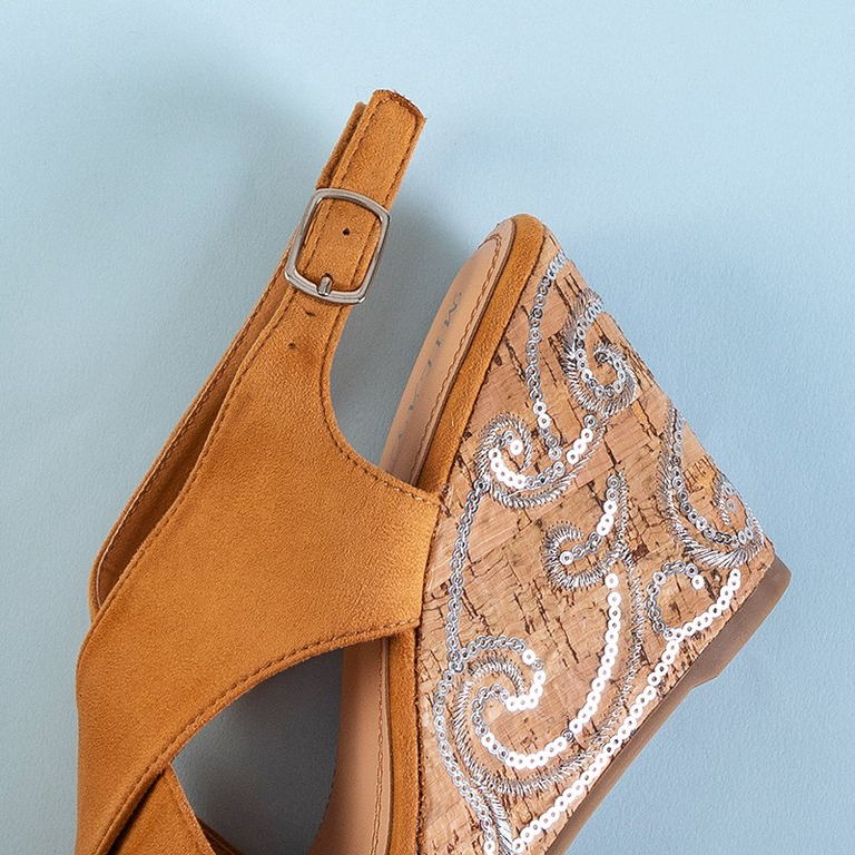 Светло-коричневые женские босоножки на танкетке с блестками Terisa