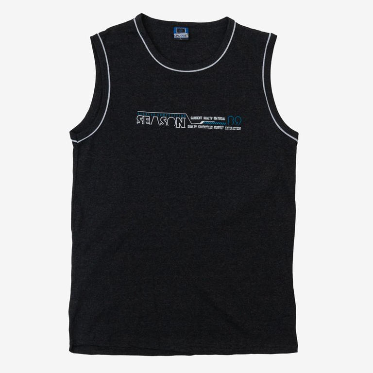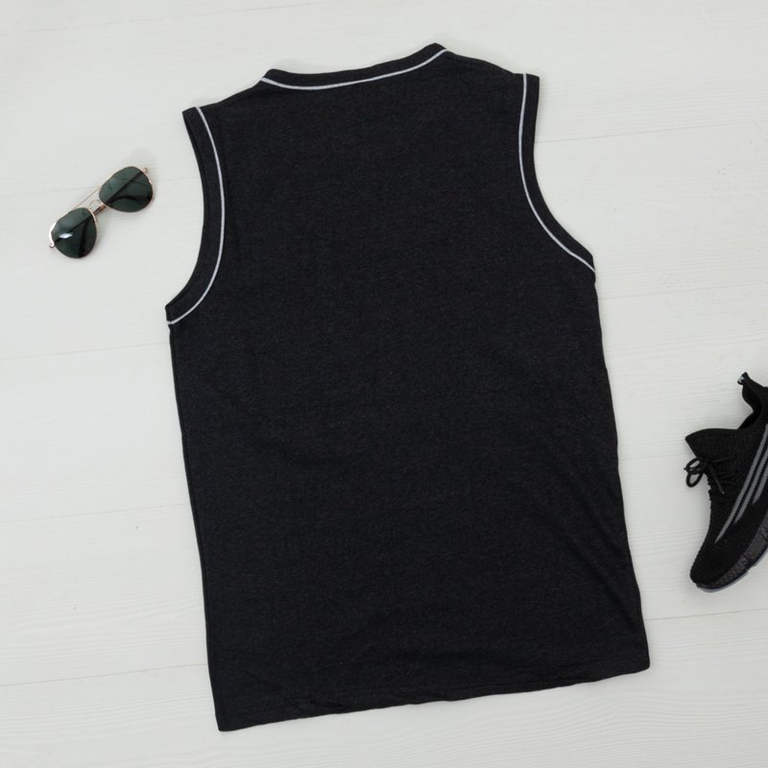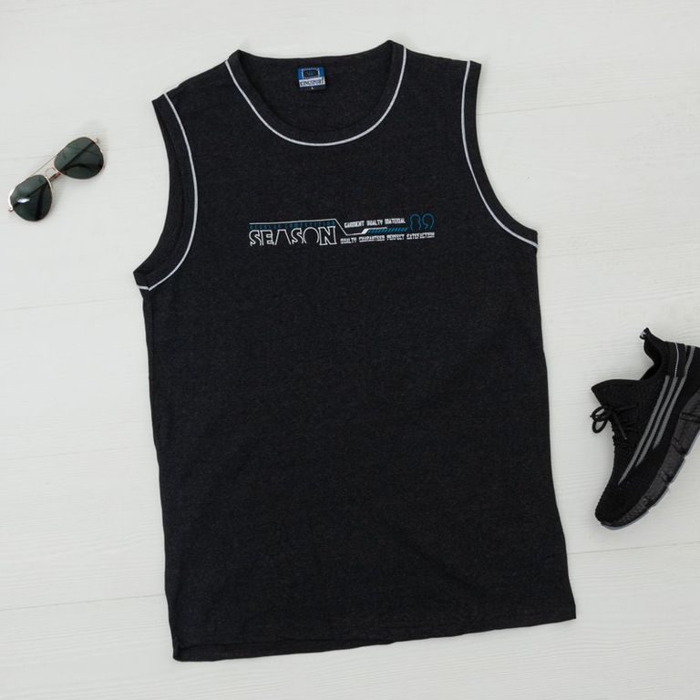 - Мужская спортивная майка. Изготовлена из 100% хлопка. Спереди модель украшена надписями. Отличный выбор для активного времяпрепровождения!
