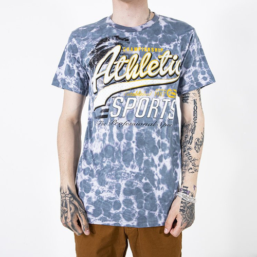 - Модная мужская футболка из 100% хлопка. Модель с круглым вырезом, спереди украшена надписями. Эффект tie-dye добавляет оригинальности в повседневном стиле.