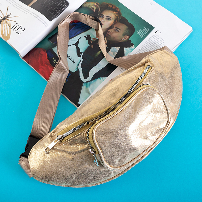 Блестящая женская поясная сумка в золотом цвете