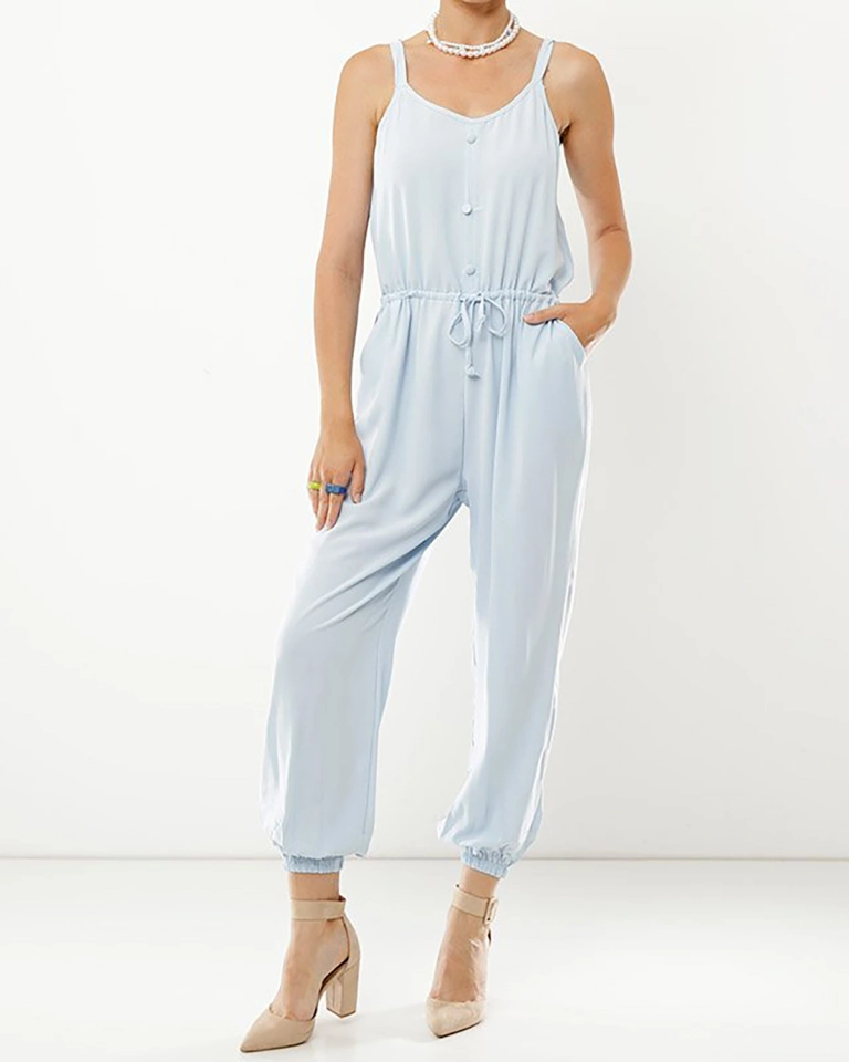 Голубой женский комбинезон с пуговицами