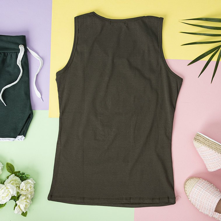 - Базовый женский топ из хлопковой ткани. Модель с круглым вырезом, спереди украшена стразами.