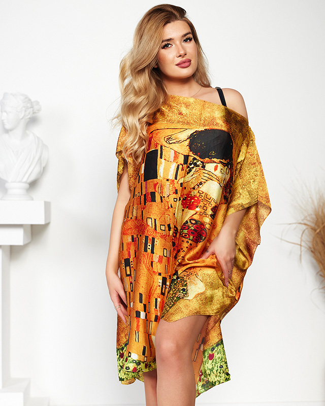 • Легкое женское парео с оригинальным принтом, которое одевается через голову и подшито под мышками. Практичная одежда, защищающий от солнца, закрывая спину и плечи.