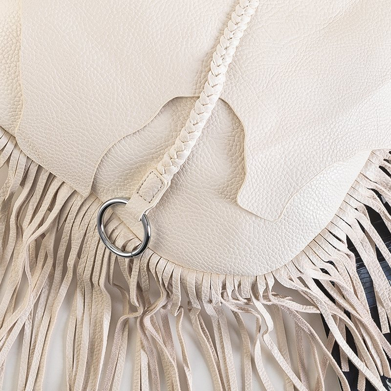 - Женская сумочка выполнена из экокожи. Изделие имеет карман на молнии и отделение для телефона. Сумка застегивается на молнию, дополнительно оснащена модной бахромой вокруг и серебряной пряжкой. Интересная модель, которая разнообразит любой образ!