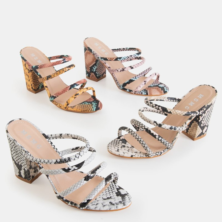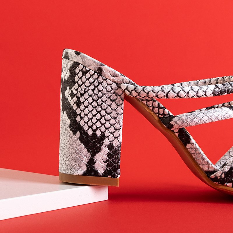 - Фантастические женские шлепанцы на высоких каблуках. Изготовленные из экологической кожи. Модель оснащена принтом под кожу змеи. Стелька обшита экологической кожей. Обувь, которая станет интересным акцентом в Вашем образе!