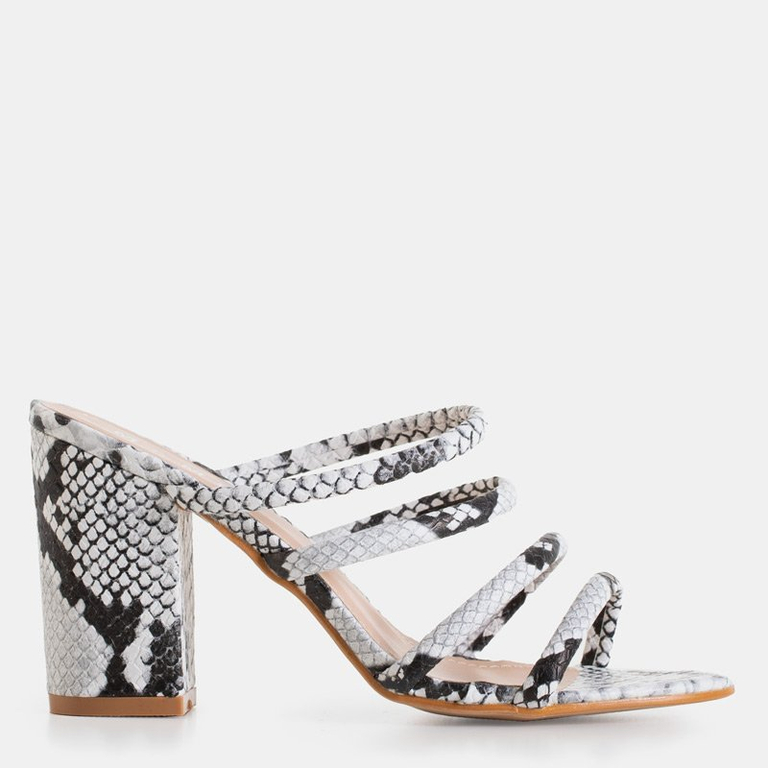 Черно-белые женские шлепанцы со змеиным принтом на каблуках Furlisa