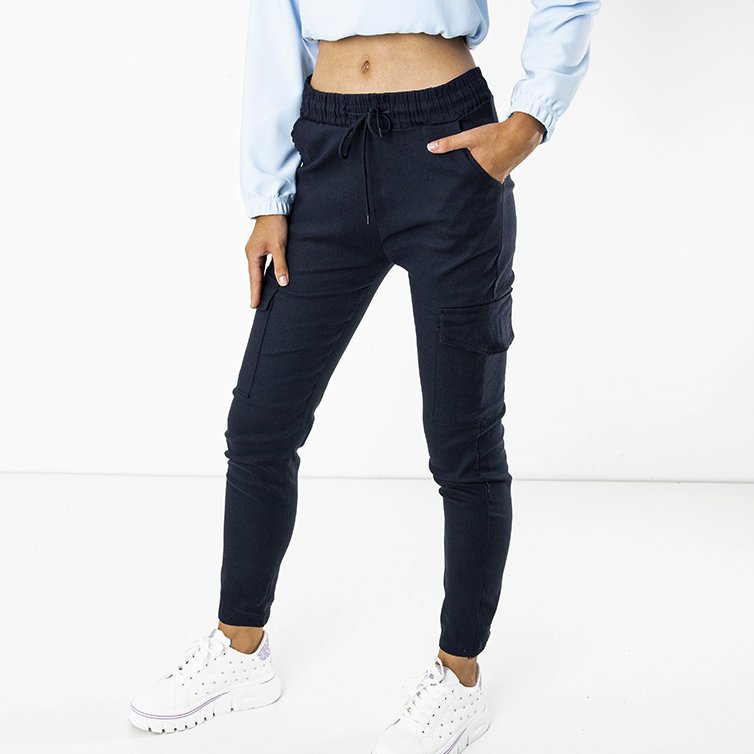 Темно-синие женские брюки с карманами