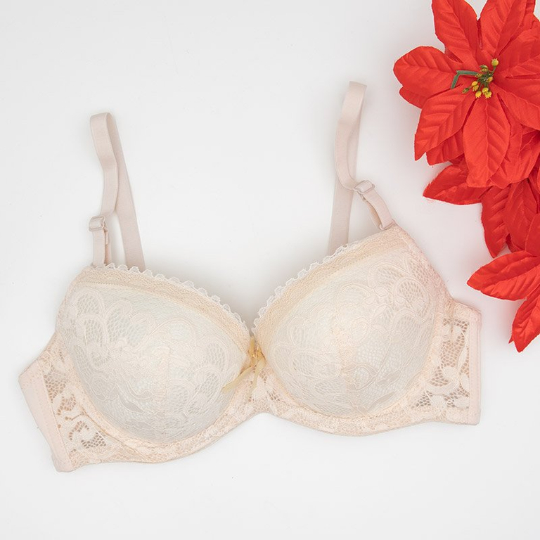 Бежевый бюстгальтер push up с кружевом