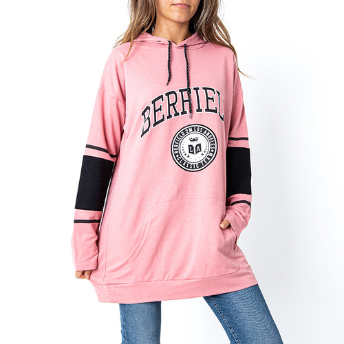 • Женское худи с надписью "BERFIELD", выполненное из сочетания вискозы и лайкры. Модель с капюшоном, имеет большой карман. Идеально подходит для спортивных образов.