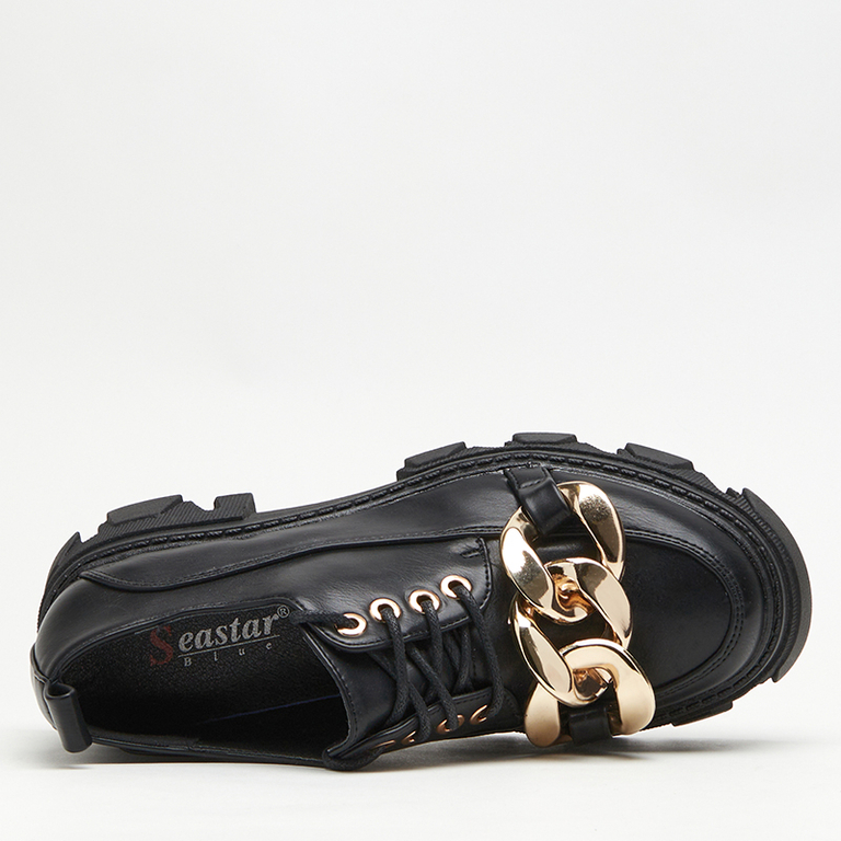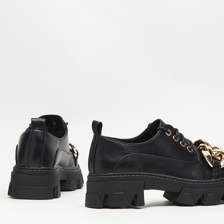 - Уникальные женские закрытые туфли с экологической кожи. Верх на шнуровке, украшен массивным золотистым элементом. Стелька также с экокожи, подошва с резинового материала. Модель, которая придаст "изюминки" в классическом образе!