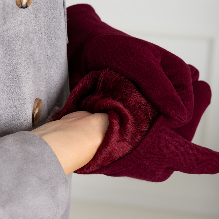 • Теплые женские перчатки из мягкой ткани. Внутри меховая подкладка. Перчатки оснащены красивым помпоном.