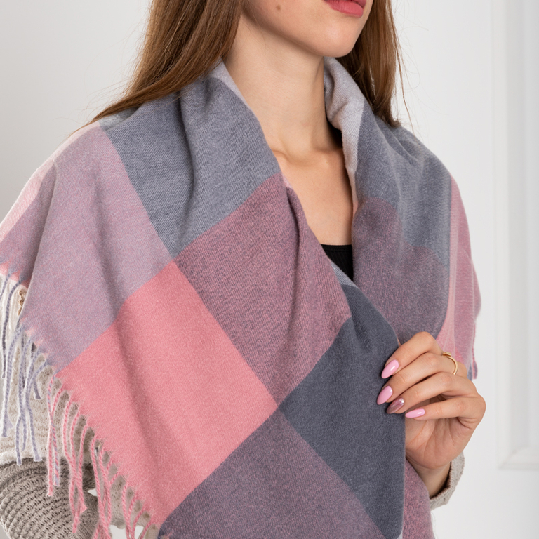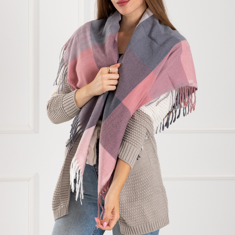 Розово-серый женский шарф в клетку