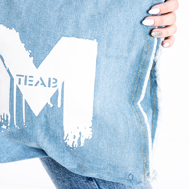 • Удобная джинсовая сумка с интересным принтом. Модель имеет одно отделение и карман. Застегивается на молнию и имеет две ручки, а также длиннее плечевой ремень. Идеальный аксессуар для стильного шопинга!