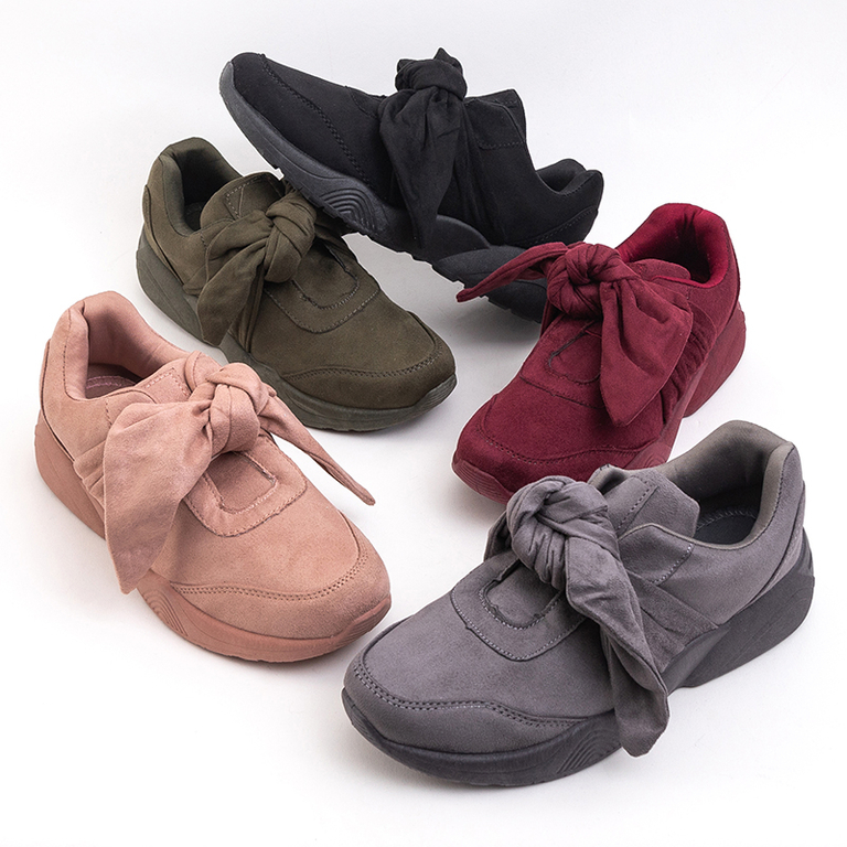 • Модные женские кроссовки, украшенные завязанным бантом спереди. Модель изготовлена из экологической замшевой кожи, внутри тканевая стелька. Незаменимая обувь для создания стильных образов!