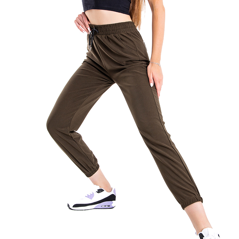 - Удобные женские спортивные штаны с эластичным поясом и манжетами. Высокая талия на завязках, а также стильная надпись. Комфортный выбор!