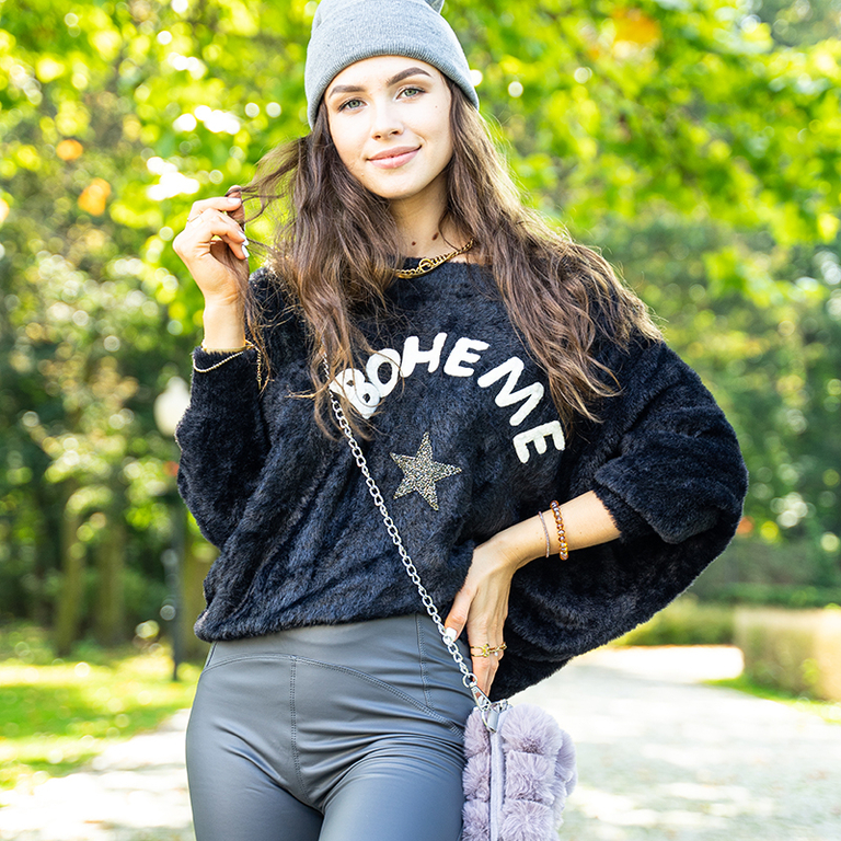 • Стильный женский свитер oversize. Выполнен из мягкой, приятной в прикосновении, ткани. Модель оснащена надписью. Идеальный выбор для повседневных образов!