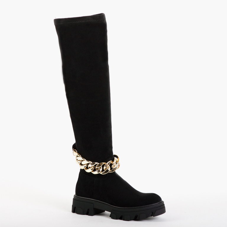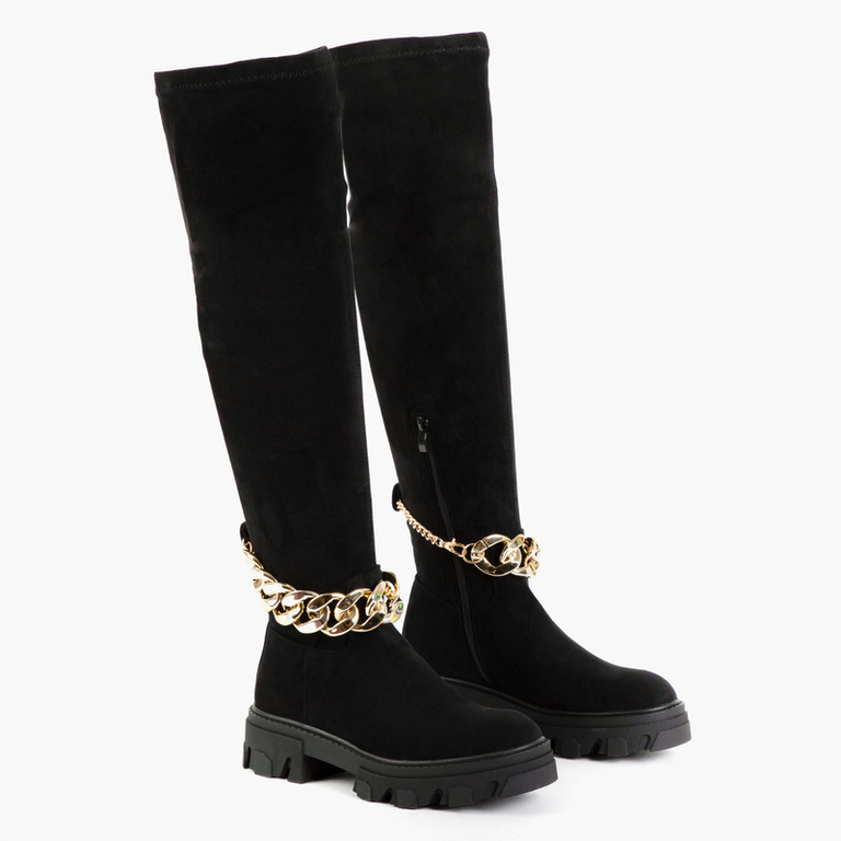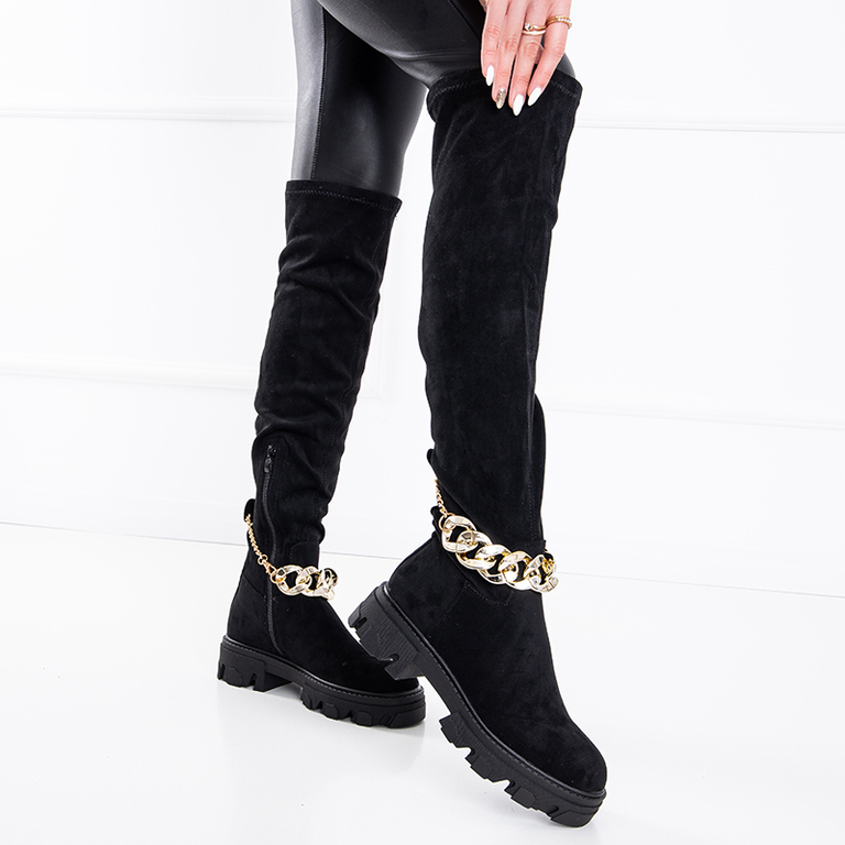 Черные женские ботфорты с отделкой Engli