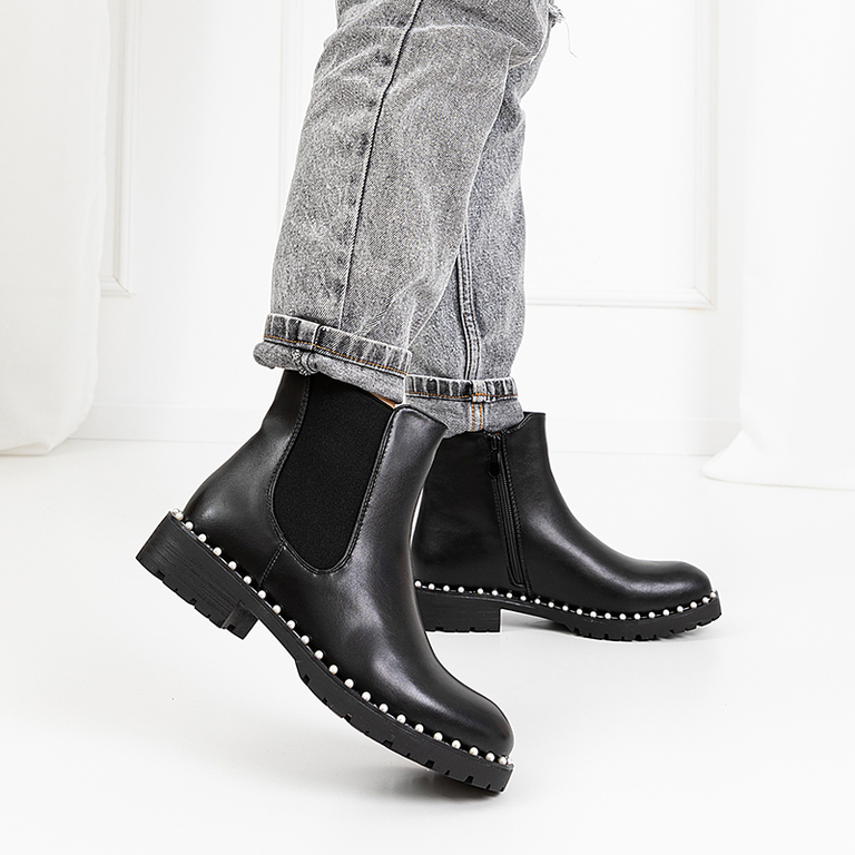 - Классические ботинки челси с эко-кожи. Внутри утепленные искусственным мехом. Модель у подошвы украшена бусинами. Обувь застегивается на молнию. Минималистичный фасон со стильными деталями!
