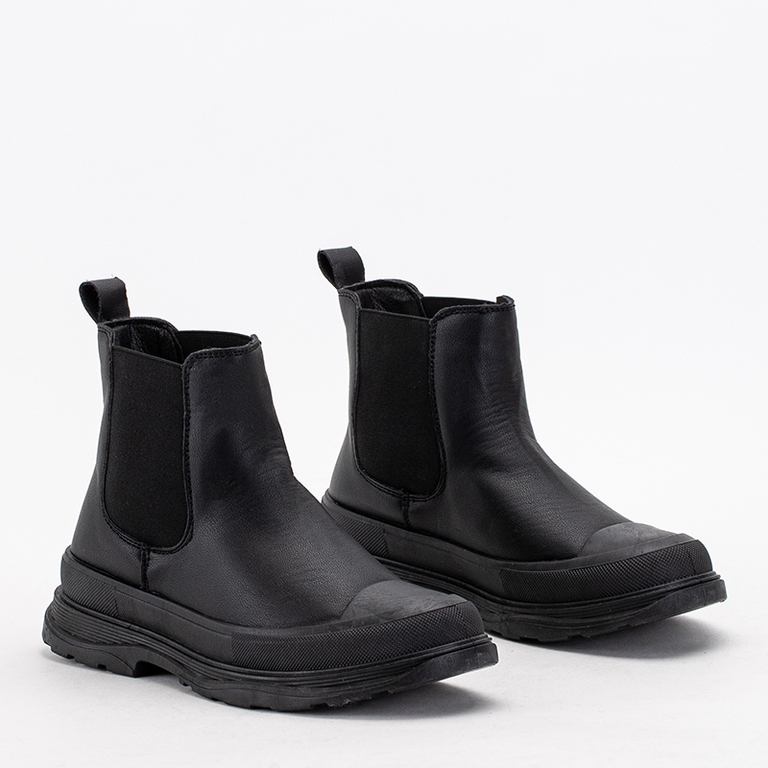 - Женские ботинки с резиновым носком и подошвой. Выполнены с экологической кожи. По бокам модели эластичные вставки. Внутри утепление тонким слоем меха. Идеальная обувь к джинсам!