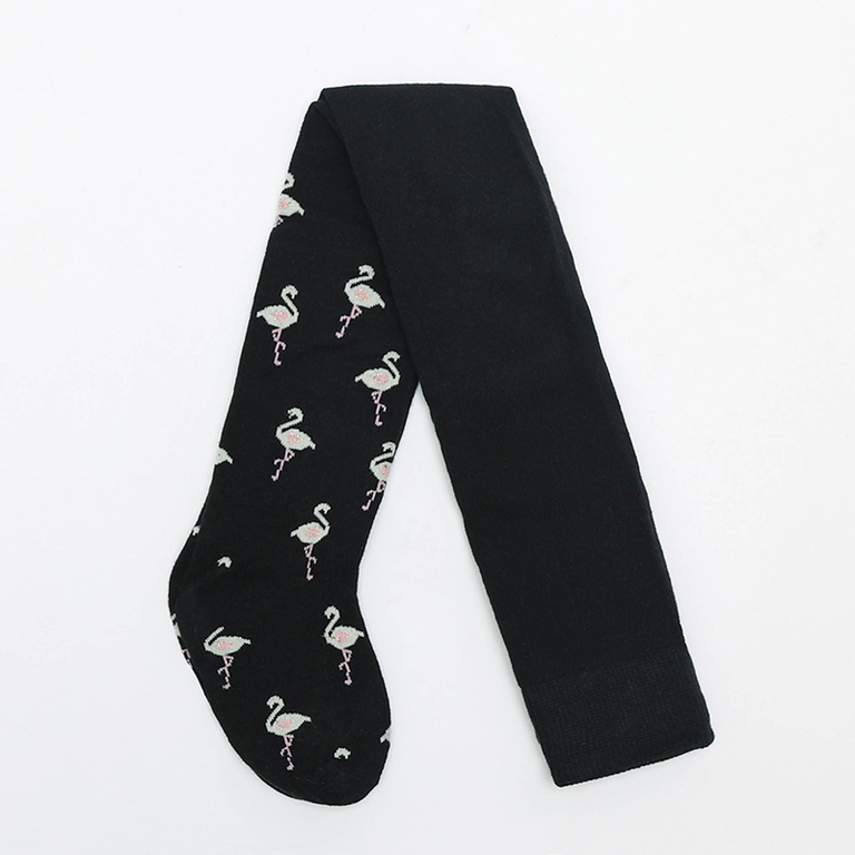 - Теплые колготки для девочек украшены принтом в виде фламинго. Изготовлены из хлопка. Идеально подходит к осенне-зимнему сезону.