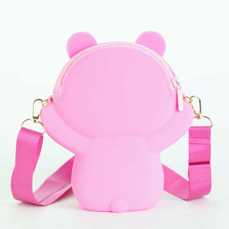 • Прекрасная сумочка в форме мишки. Модель на молнии. Внутри одно отделение без дополнительных карманов. В комплект входит длинный ремень, который можно регулировать.