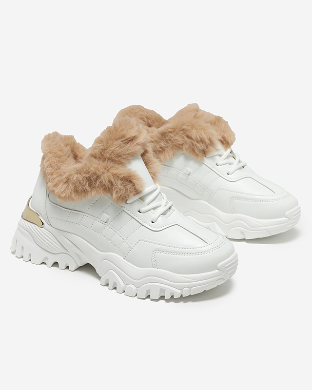 Белые утепленные кроссовки с отделкой Flixi