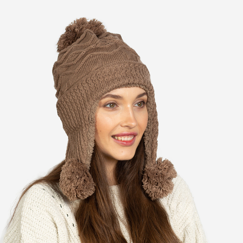 - Уютная женская утепленная шапка. Модель с мягкой меховой подкладкой, украшена пушистыми помпонами. Идеально подходит для прохладных, зимних дней!