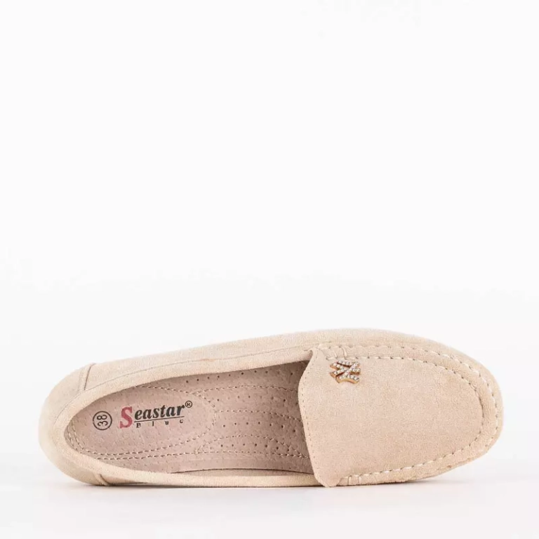 OUTLET Женские бежевые мокасины из эко-замши с декором Pixila - Обувь