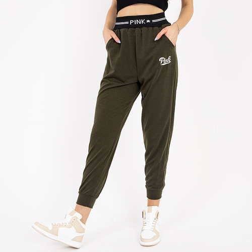 - Практические женские спортивные штаны из приятного материала. Модель имеет 2 кармана и эластичную резинку с надписями, которая придает стильности.