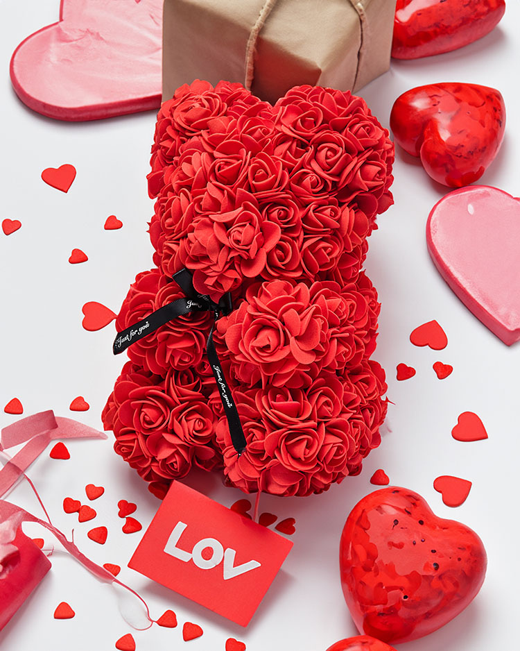- Очаровательный мишка из пенопластовых роз, с ленточкой с надписью "Я тебя люблю". Идеальный подарок на День святого Валентина или день рождения любимого человека!
