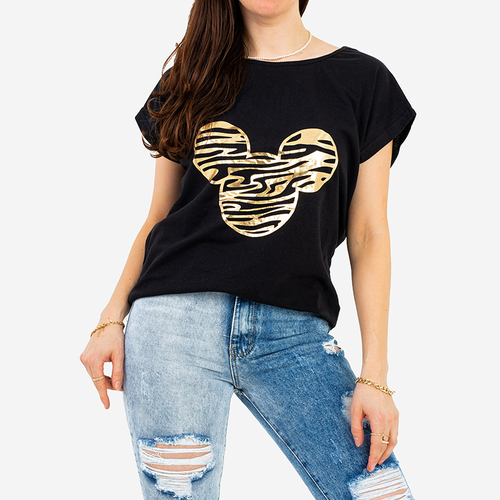 Черная женская футболка с принтом золотой мыши - Одежда
