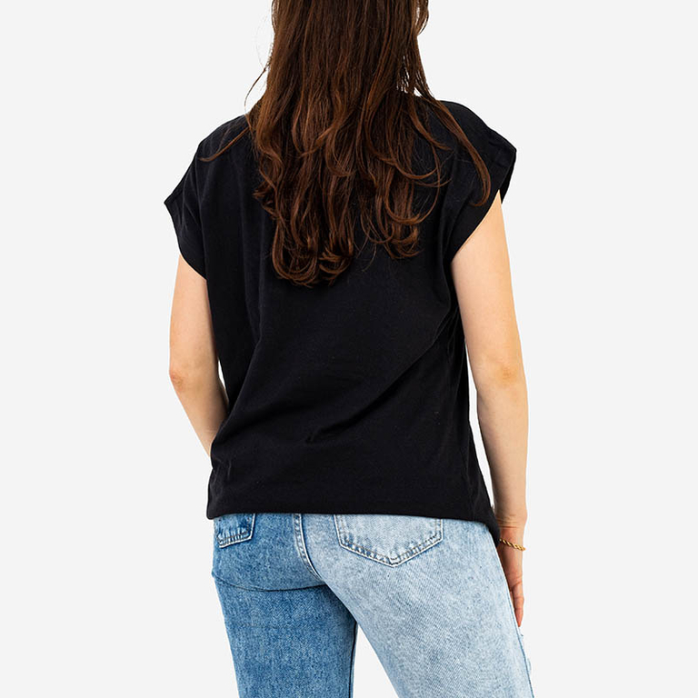 • Прекрасная женская футболка с короткими рукавами и круглым вырезом. Передняя часть футболки украшена золотым принтом. Идеальная основа для многих повседневных образов! ПРИМЕЧАНИЕ: Точность измерения (+/-) 1 см.