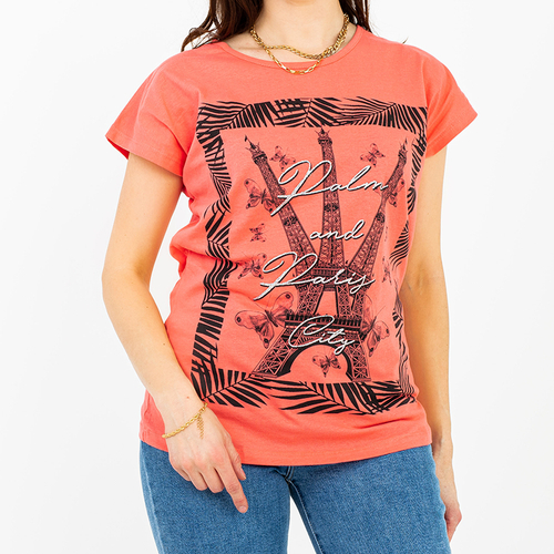 Коралловая женская футболка с принтом и блестками PLUS SIZE