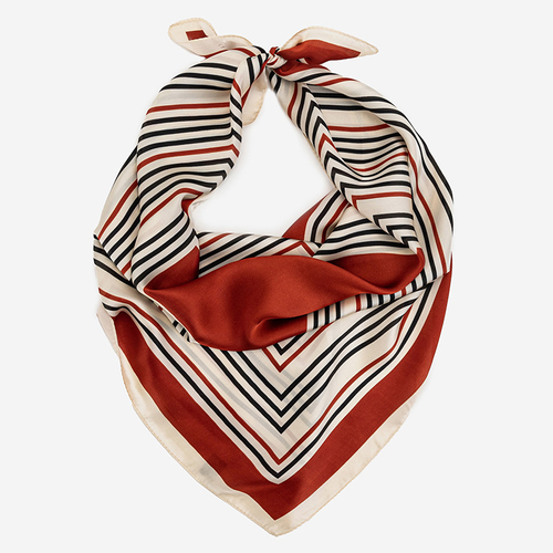 - Роскошный женский платок в полоску – универсальная модель, которую можно носить во многих вариантах. Сформируйте и завяжите его на шее, волосах или украсьте сумку. Идеальное дополнение к вашим нарядам на разные сезоны!