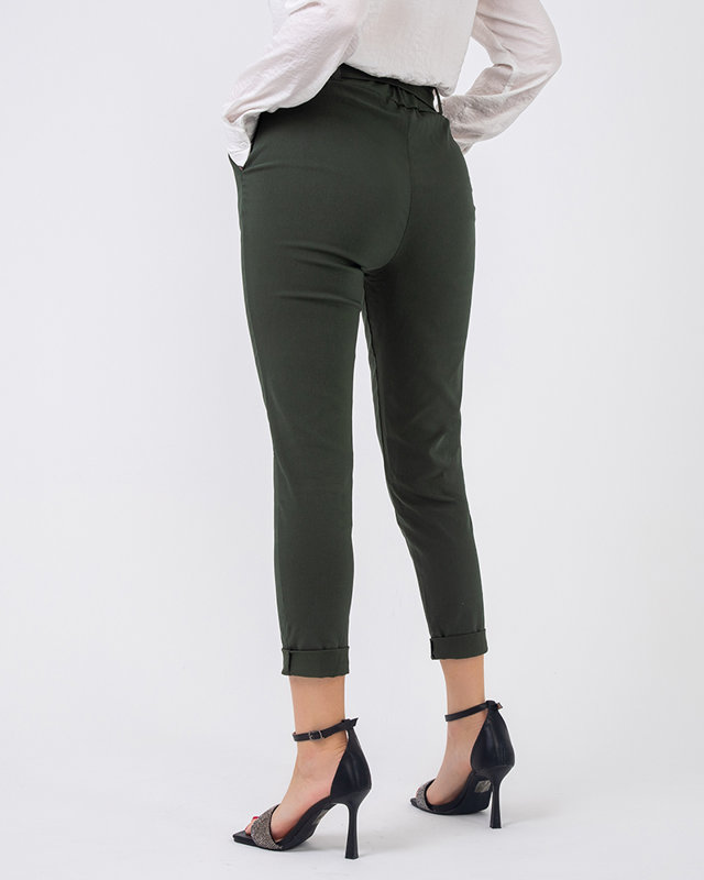 - Стильные женские брюки с высокой талией. Выполнены из ткани. Модель имеет эластичный пояс и два кармана спереди. Станут незаменимыми в гардеробе каждой женщины!