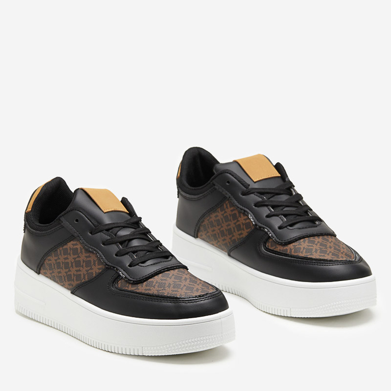 - Женские кроссовки изготовлены из экокожи, украшены принтом. Завязываются на шнуровке. Стелька из ткани. Модель имеет удобную, толстую подошву. Идеальная обувь для повседневного использования.