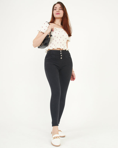 • Женские треггинсы с высокой талией. Изготовлен из эластичного материала. Модель имеет эластичную резинку в поясе, декоративные пуговицы, 4 кармана. ПРИМЕЧАНИЕ: Точность измерения (+/-) 1 см.