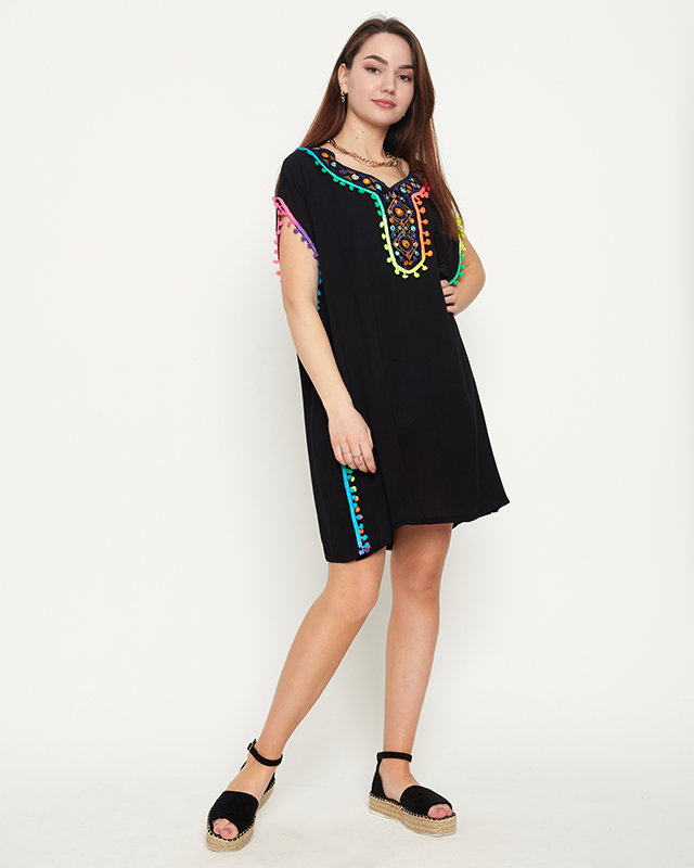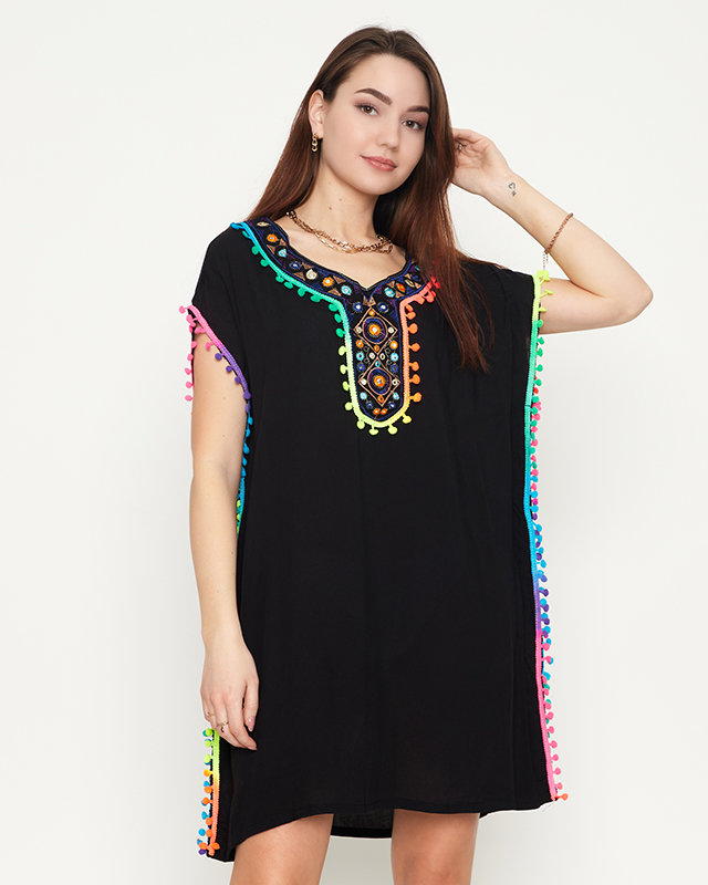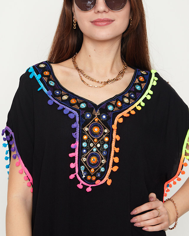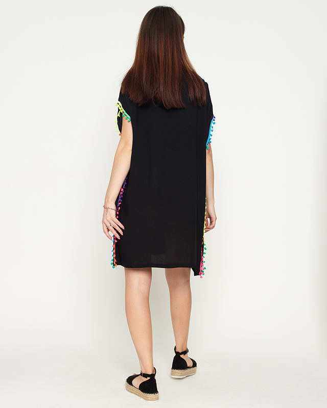 Женская летняя пляжная туника черного цвета с бахромой - Одежда