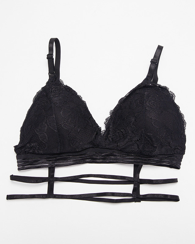 • Эффектный бюстгальтер, украшенный мягким кружевом и тонкими декоративными ремешками. Модель без застежек, имеет регулируемые бретели.
