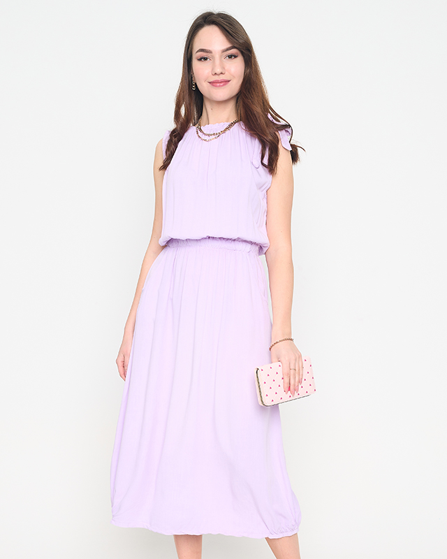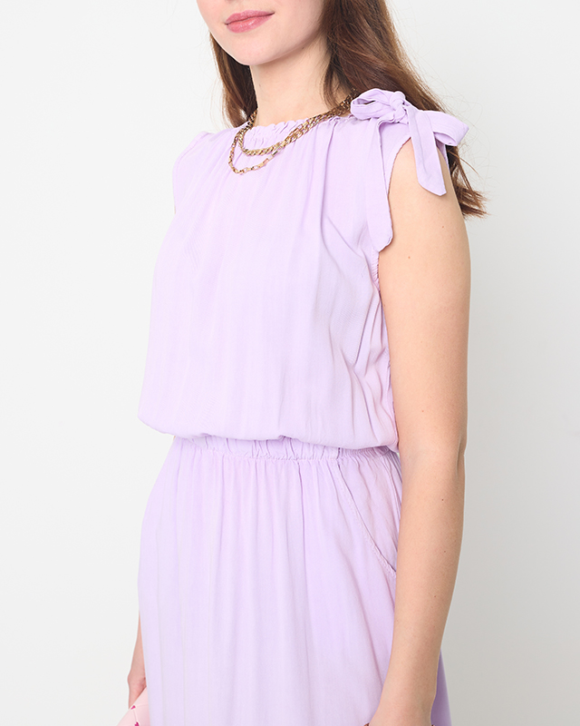 Фиолетовое женское платье на плечах с карманами - Одежда